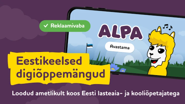 Το ALPA Kids προσφέρει ψηφιακά εκπαιδευτικά παιχνίδια για παιδιά 3-8 ετών. Μαθαίνουν αριθμούς, αλφάβητο, σχήματα και τη φύση της Εσθονίας, στην εσθονική γλώσσα. Δημιουργήθηκε με ειδικούς στην εκπαιδευτική τεχνολογία και νηπιαγωγούς, χρησιμοποιώντας παραδείγματα τοπικής κουλτούρας.