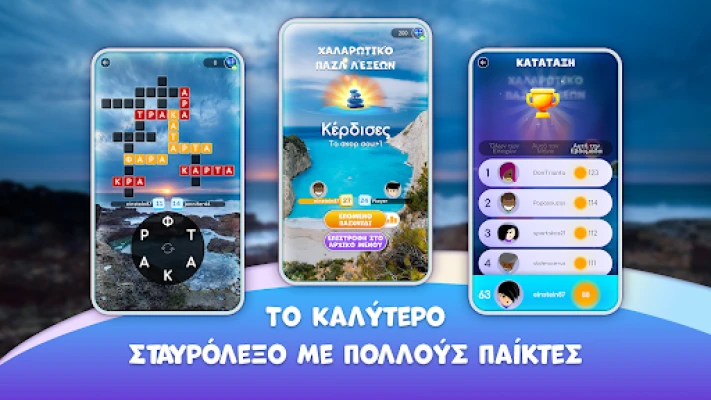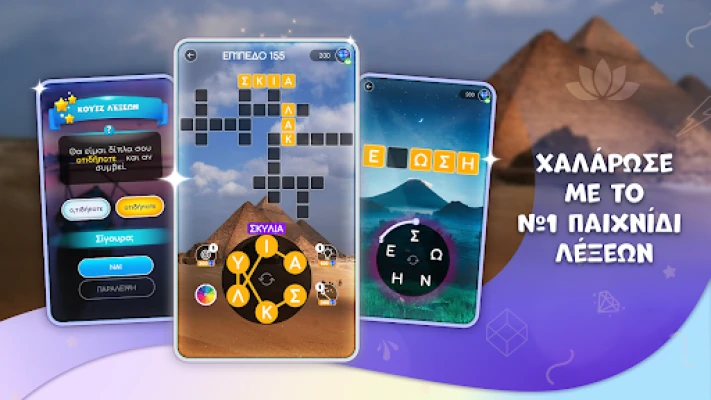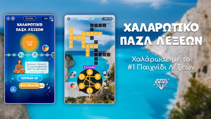 Με το Χαλαρωτικό παζλ λέξεων, ξεκίνα ένα μοναδικό ταξίδι. Εξερεύνησε τα πιο γαλήνια μέρη του κόσμου, ενώ απολαμβάνεις ένα πραγματικά εθιστικό και συναρπαστικό παιχνίδι λέξεων. Συνδύασε τη χαλάρωση με την πνευματική πρόκληση.