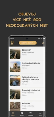 Ψάχνετε μοναδικές ιδέες για ταξίδια; Η εφαρμογή-οδηγός Úžasná místa είναι ο ιδανικός σας σύντροφος. Ανακαλύψτε πάνω από 900 προσωπικά εξερευνημένα, μαγευτικά σημεία στην Τσεχία για αξέχαστες εκδρομές και συναρπαστικές περιπέτειες.